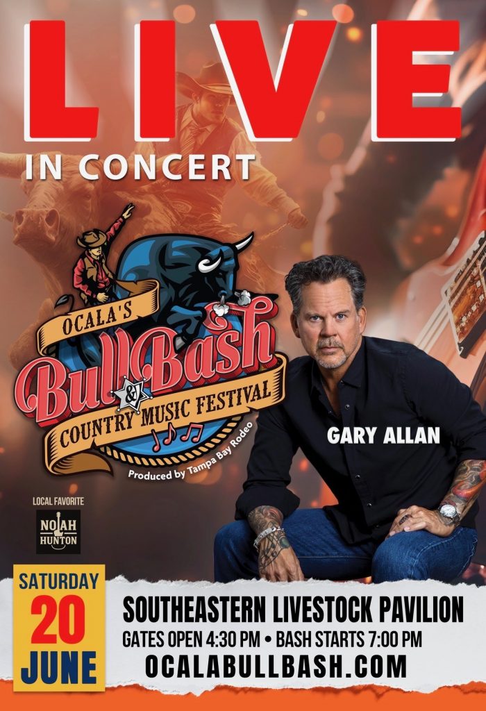 Celebrate America’s 250th at Ocala’s Bull Bash & Country Music Festival on Saturday, June 20, 2026 at the Southeastern Livestock Pavilion! Enjoy a night of bull riding and country music from Gary Allan! Listen all week on the Drive @ 5 to win a pair of tickets to the Ocala Bull Bash! To purchase tickets, click here.